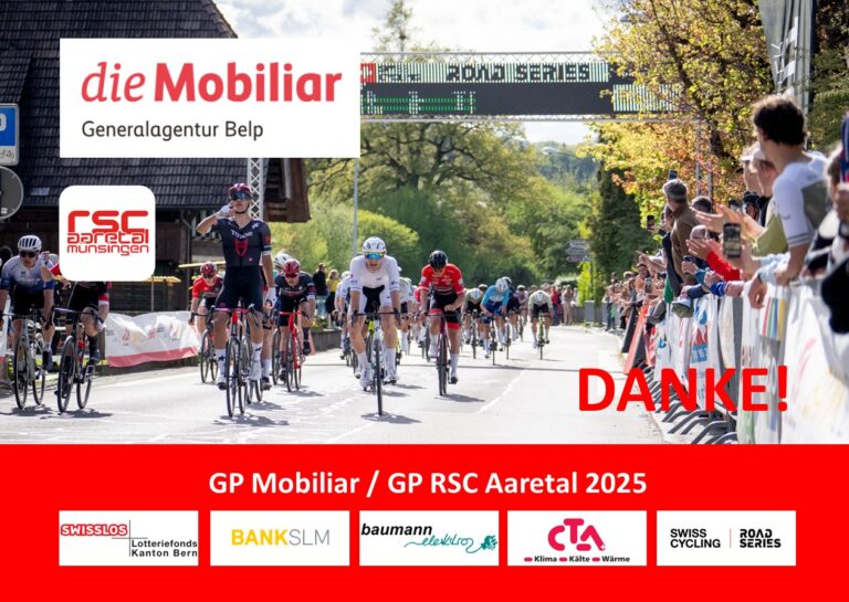 DANKE / THANK YOU / MERCI / GRAZIE Bereits sind 3 Monate vergangen, seit am 16. Grand Prix Mobiliar um Siege gekämpft und gesprintet wurde. Wir können auf einen gelungenen Radsporttag in Kiesen zurückblicken. Das Rennen konnten mit vielen Zuschauern und unfallfrei durchgeführt werden. Darum gibt‘s an dieser Stelle Im Namen des RSC Aaretal Münsingen […]