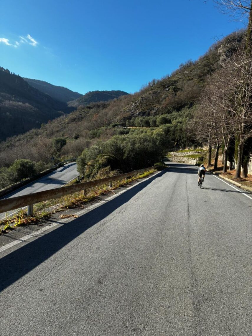 Unser vorletzter Tag führte uns über zwei längere Anstiege. Uns war es bei jeder Ausfahrt wichtig, dass jeder sein Tempo fahren konnte! Wer will schnell, wer will, bewusst Grundlage. Der Latisimus und Le Domestique konnten es an diesem vorletzten Tag natürlich mit dem Ego nicht sein lassen;). So spielten die Zwei an den beiden langen Anstiegen jeweils ihre Spiele bis einer von beiden zu erst gekocht/ broke war. Nach dem letzten Colle folgte das nächste Vergnügen! Mit TacTac – ( im Jargon, knackig in die Gänge schalten) und viel Garacho galt es nach Sanremo runterzubrättern. Etwas nach Sanremo bambelten wir bei Kaffee und Panini noch etwas mehr als wir es eh schon die ganze Zeit taten, die Seele aus.