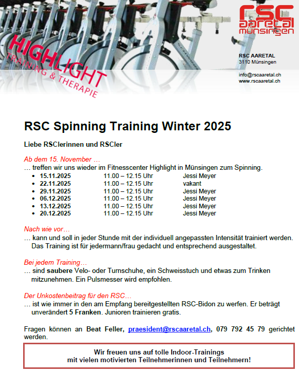 2025 findet ab 15.11.2025 wieder unser IndoorCycling Training statt.