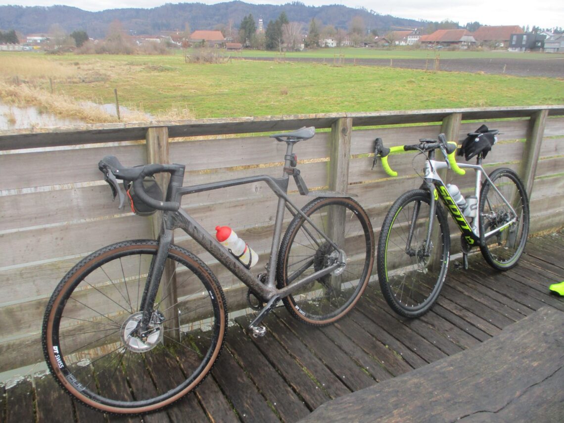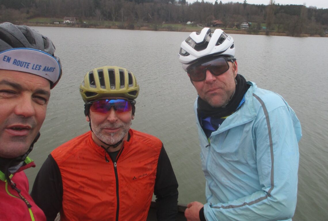Das Wetter machte nicht wirklich Lust auf Radfahren. Trotzdem starteten wir zu Dritt zu unserer Monatstour Februar. Die Gravel-Tour ist die letzte des Winters 2025/2026. Geplant war eine Strecke an den Moossee und zurück. Bereits beim Start regnete es leicht und so waren wir froh um unsere Regenjacken. Die Strecke war zum Teil morastig und nass. Trotzdem kamen wir gut voran und ohne grössere Probleme (einzig ein paar kalte Hände) erreichten wir den Moosee.